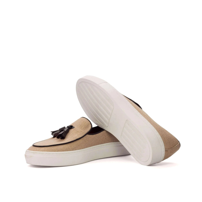 المواد: مصنوع من جلد العجل البني الغني، ومكمل بقماش الكتان TAN المتين لتحقيق مظهر مصقول ولكنه غير رسمي.